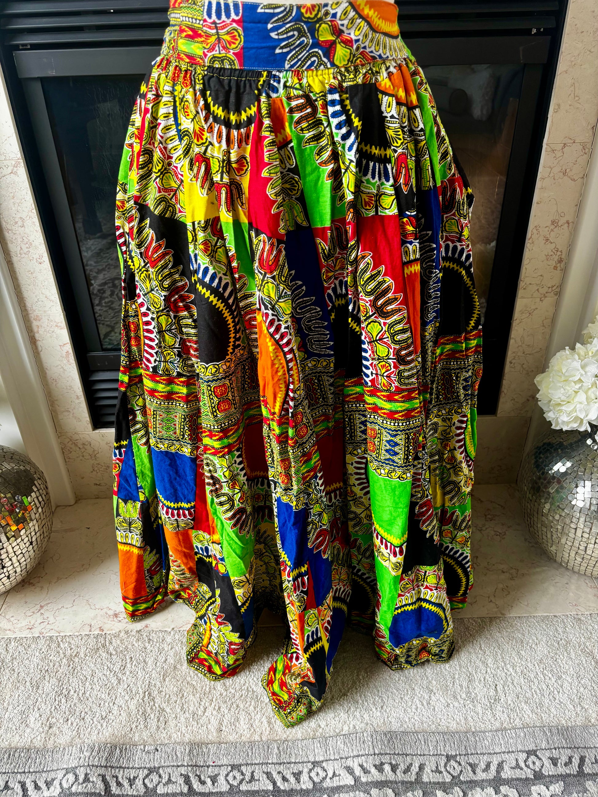 Statement Skirt—a bold, long, multi-colored that radiates confidence and culture.