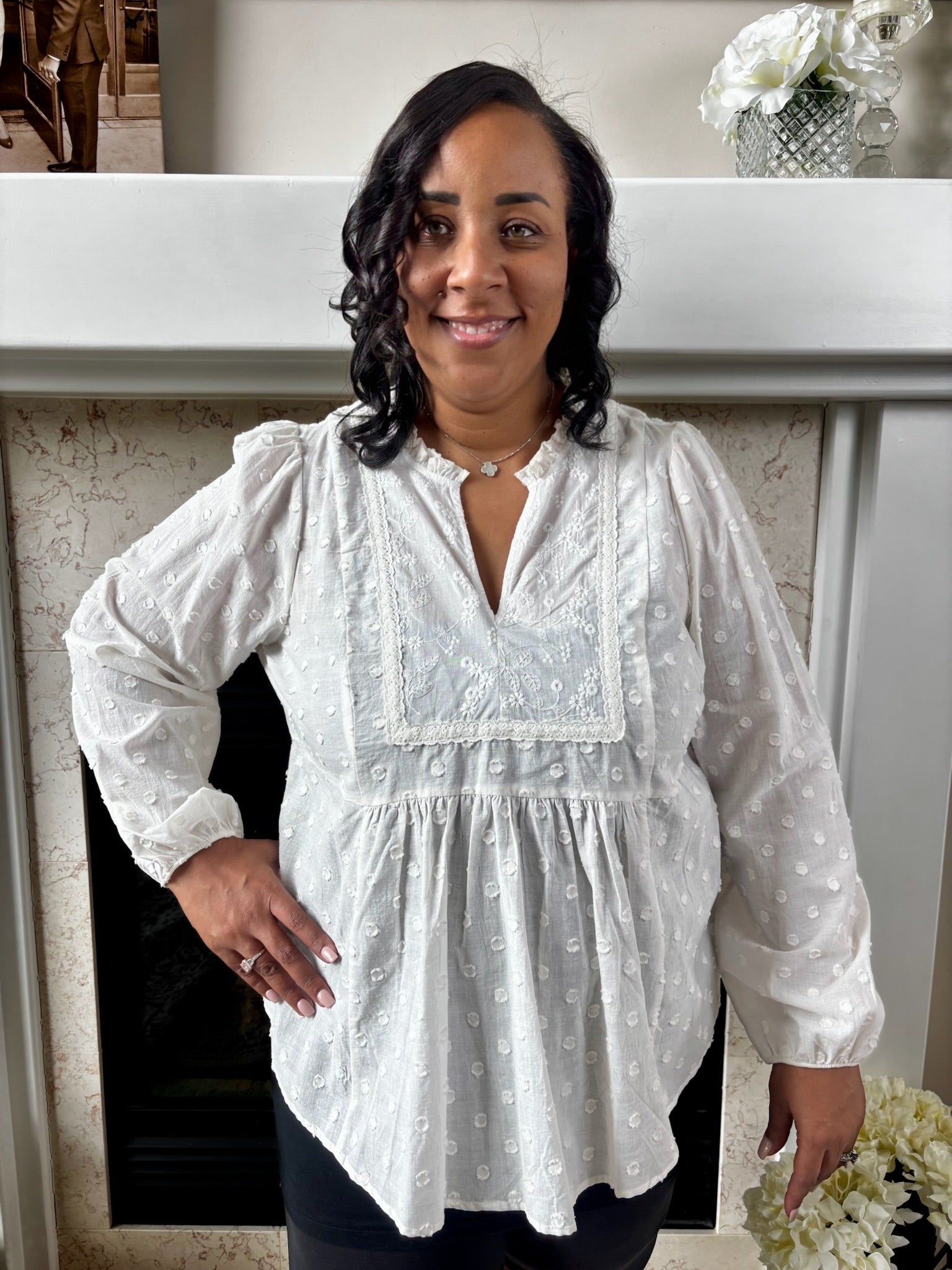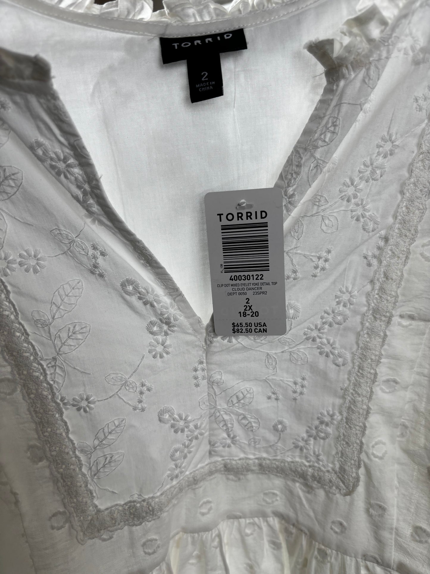 This lightweight Torrid blouse features airy voile details, a flattering V-neckline, and long sleeves that is elegant, soft, and effortlessly polished. Tag on item - brand new, never worn.