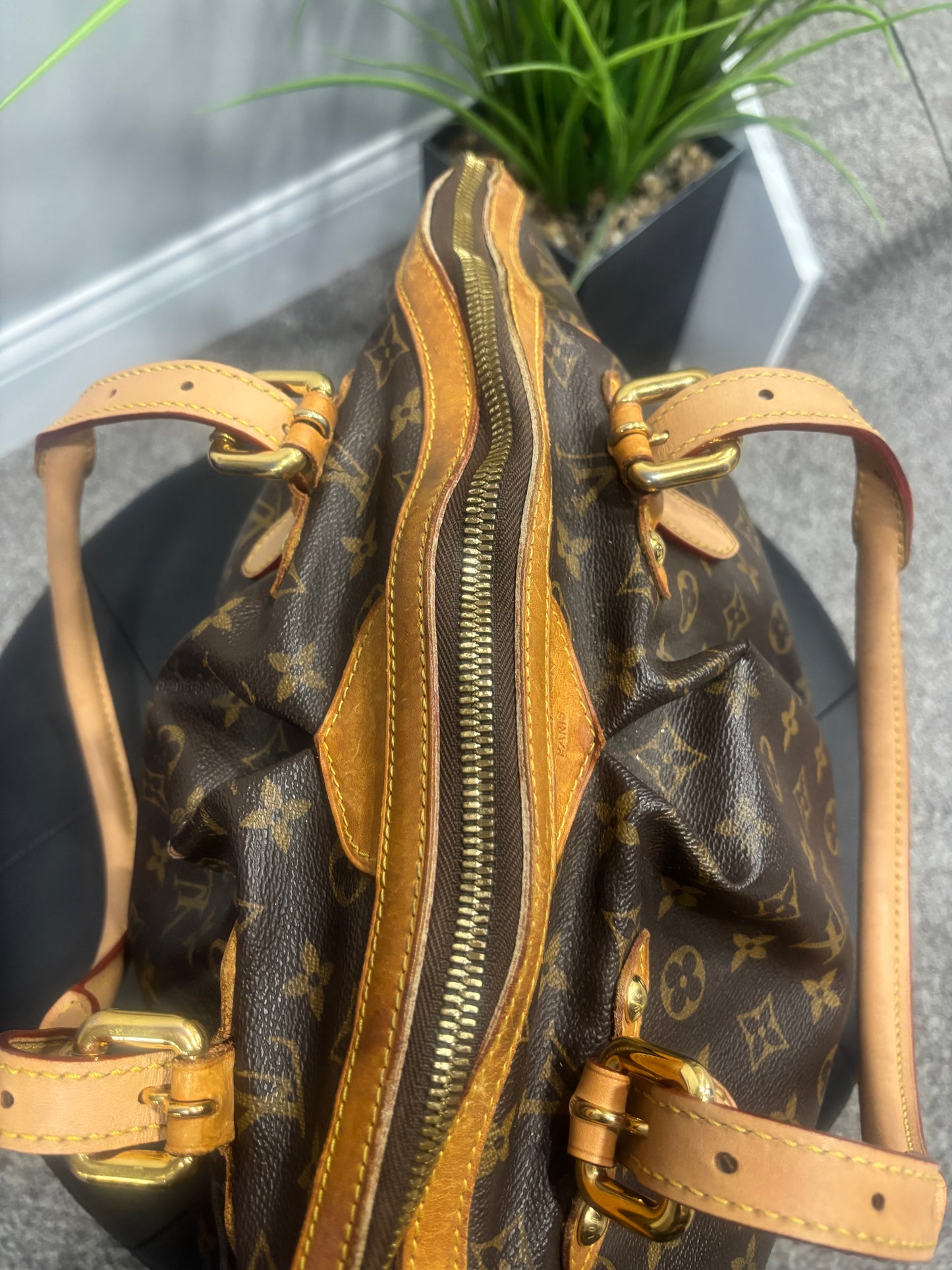 Despite these signs of use, the bag remains in good condition and is structurally sound with plenty of life left. Perfect for everyday wear or travel, this Tivoli GM is a versatile luxury piece that balances style and practicality.
